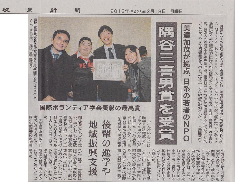 2月16日、国際ボランティア学会で最高の「隅谷三喜男賞」を受賞しました!